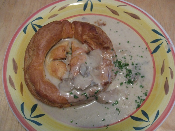 On our most recent visit, our son declared the chicken salad the best he’d ever had. Even granting that any meal he enjoys is the best he’d ever had while he’s eating it, the taste I had seemed more than satisfactory. On this last visit I had the tourte au poulet, in part because I was actually in a mood for cream of mushroom soup which was sadly not on the soup rotation that day, and this item has a mushroom cream sauce. It was beautifully flaky outside and nicely flavorful inside, and very filling although not terribly large. I personally am quite pleased with the portion sizes here, though it’s quite likely that larger appetites will want to order extra sides to fill up.