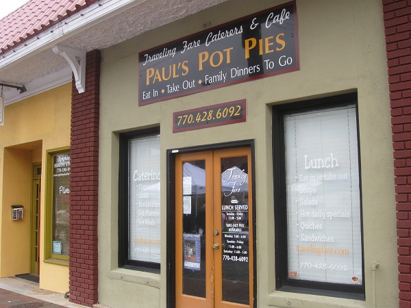 Traveling Fare is a local Marietta business that has been around for over a quarter of a century. You can go to the small storefront just off the Square and get a lunch, or buy some of the pot pies to take home and bake for dinner.
