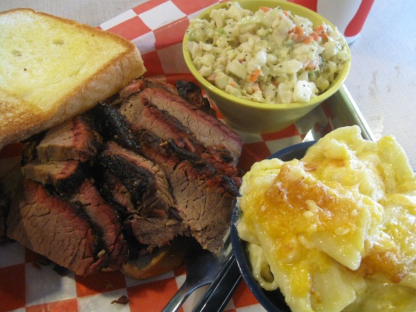 Speaking of sauces, they have two on the table. Neither completely thrilled me, but they were both perfectly good. I felt the vinegar sauce was just a bit milder than I prefer, but the sweet brown sauce was very nicely balanced and complemented the meat very well. This was very good pulled pork, nicely smoked and moist. Yet I read that the brisket is even better. Obviously, another trip was needed. So a week later, I returned.