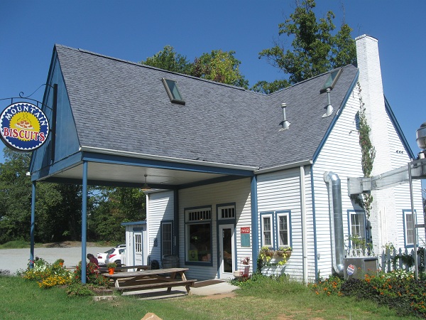 A few Thursdays back, I was looking around for something new to eat or revisit, when Mountain Biscuits came up as a “nearby suggestion” to some place on the Marietta Square that I was considering. They allegedly made a very good chicken sandwich, and so I drove over there to try it. The drive wasn’t at all bad, and the lovely old building, very photogenic, was inspiring. It is no fault of the restaurant, but the illusion of a middle-of-nowhere roadside shack is sadly spoiled by the presence of some condos across the street.