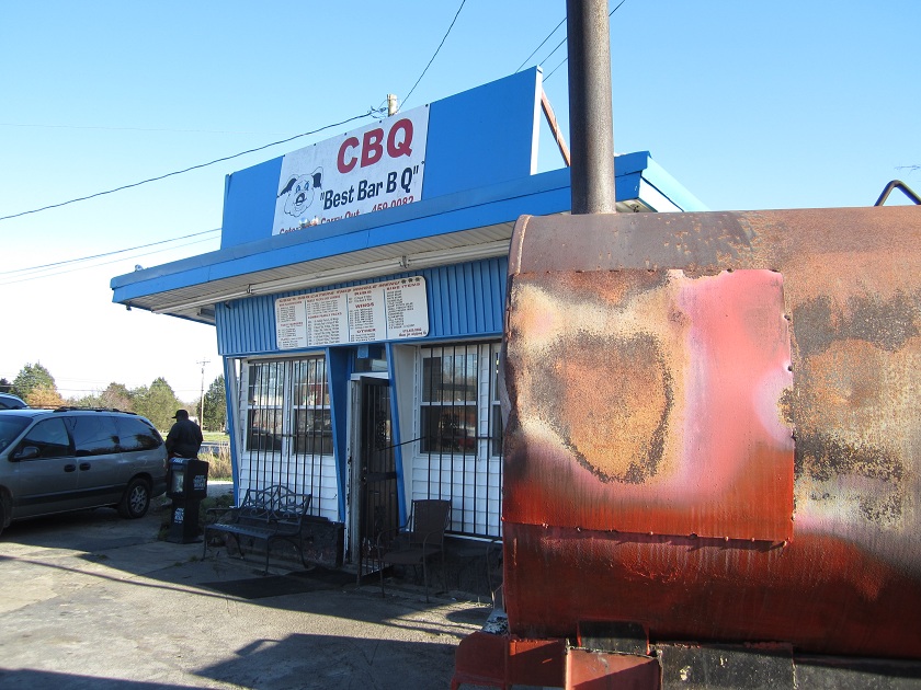 But what we didn’t find anywhere was barbecue. I admitted that I was having a problem with my addiction to using Urbanspoon to over-plan our trips, and so, for the drive north, I was just going to turn off the computer and not plan for anything. After leaving South Pittsburg, we’d just stop if we saw those three glorious letters, BBQ, and not be tied to a schedule like we so frequently are. Sadly, it was nearly a hundred miles before we saw those letters, and even then, the first of the three was different. We made it all the way to Smyrna, one of Nashville’s southern suburbs and one absolutely choked with used car lots and scrapyards, before we spotted CBQ on the left and turned around to try them.