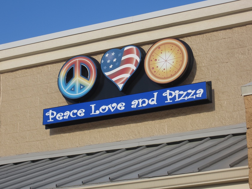 So a little takeaway joint like Peace Love and Pizza, with its similarly fake early seventies nostalgia, decorated with pretty much the same posters available from any poster shop that sells overpriced Led Zeppelin and John Lennon prints for dorm room walls, should have me rolling my eyes. But I dunno, I guess this place caught me in a good mood or something; between reading two Richie Unterberger books, listening to the complete Byrds catalog and watching Easy Rider on YouTube over the course of March, I was predisposed to go lightly on any place that could keep the good times coming.