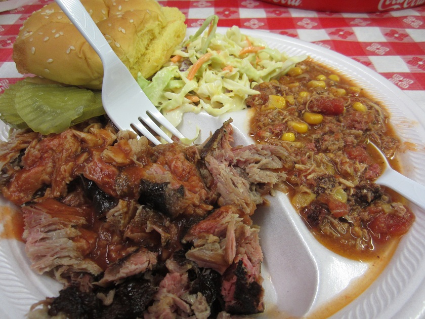 This results in very smoky and tender meat, served wet with a medium-thick tomato-based sauce. In all the congenial confusion of the very informal ordering process, I forgot to ask for mine dry, but didn’t mind much. I can’t stress enough how truly laid back this restaurant is. Phil and our server asked how many stews were coming out, and who wanted what kind of sandwich, and everybody at the table was happily munching on their meaty stew before I even got to clarify that I’d like a plate and not a sandwich. Then they overlooked that they’d already sent me a stew and didn’t mind.