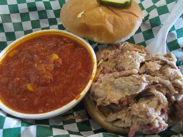 The barbecue was very tasty and I’m glad that we got to enjoy it after so long. This is pulled pork, and I think that perhaps locking it inside the Big Green Egg for the second part of its cooking life might help bring out these juices a little more. The meat is moist, but not steam tray moist, if you take my meaning. They do chicken and ribs as well, but we all stuck with pork, and also enjoyed some beans and some Brunswick stew. Unfortunately, the stew was the only disappointment of the trip. It’s possible for stew to be too tomatoey, and this was proof. Fire engine red in color, I’ll give them points for something unique, but any other ingredients were so smothered that it simply tasted like meat in a bowl of tomato soup.