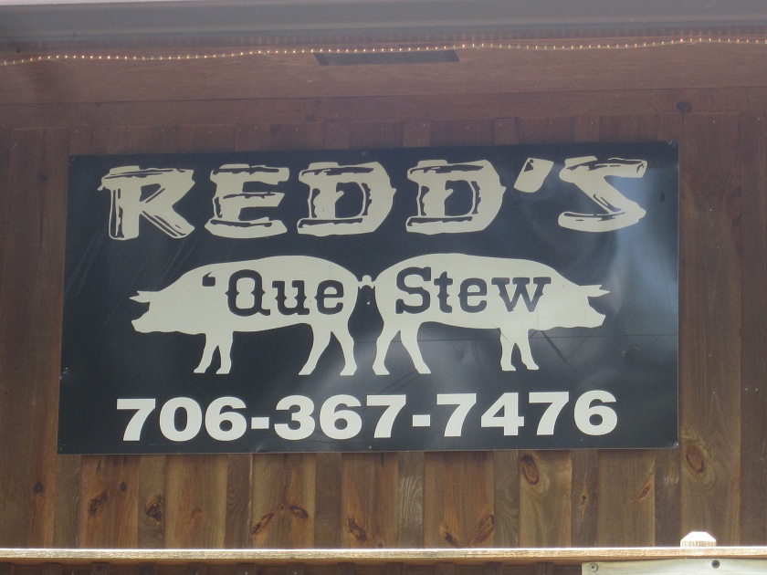 Greg and Mitzi Redd opened Redd’s Que and Stew in 2008. It’s a kissin’ cousin to The Redd House, a very nice place just a little closer into Jefferson that is owned by Greg’s sister Karen and her husband, Andy Marlowe. Both places are in an unincorporated community called Brockton, and I noticed them for the first time earlier this year, when I took GA-335 between Jefferson and Nicholson and visited a barbecue place called Cabin Creek. I said then that I’d make it back as soon as feasible, which is why this restaurant won out over the other two on my list of wants for the area.