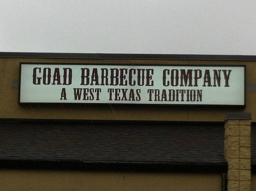 Lawrenceville, like Lilburn and Grayson and Snellville and all those other Gwinnett County municipalities, is in a black hole for our blog. Halfway from our house to Athens, I can’t quite get past the mental block that commands me to just drive on to Athens if I want to get some lunch, so the stars really need to line up right for me to visit a restaurant in these neighborhoods. Fortunately, I actually had lunchtime business – real live honest expense report for the mileage business – about six miles further up GA-316 one day a few weeks back, and so I could stop by Goad, a Texas-themed barbecue joint owned by a native of Abilene who’s brought his family’s style of cooking to this small suburban strip mall. His wife, Lisa Nutter Goad, had dropped me a line earlier in the year suggesting that I stop by. I love it when business owners reach out to us, even if the reality of our schedules means we don’t often get to visit.