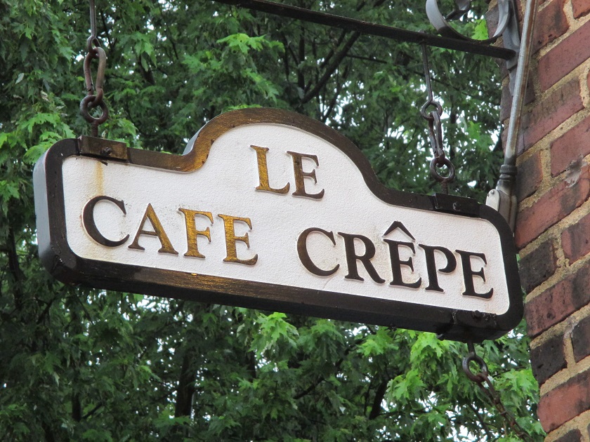 In March, a reader named Pam gave me a terrific idea. I had been mentioning how Marie seems to act like crêpes are nature’s perfect food or something, and she asked whether Marie had ever been to Le Café Crêpe near the Marietta Square. And me needing to figure out someplace nice to take her for our proper anniversary dinner and everything. (And yes, for those of you who have been following along the last few weeks, Marie did seem to get an abundance of anniversary meals, didn’t she? Funny how that worked out.)