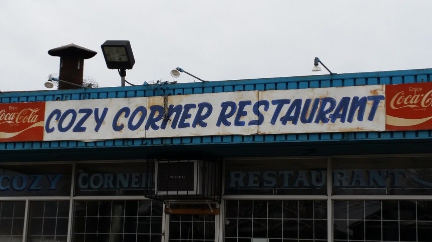 The first Saturday that they were open, the place was packed. The kids and I arrived at 12:45 and they were already sold out of their signature item, barbecued Cornish hen. Cozy Corner is possibly the only place that I’ve ever visited that offers such a treat. Their fans, deprived of Cornish hen for eight weeks, had apparently lined up before they opened, and the hens were gone inside 90 minutes. That was okay; we had some sliced pork, beans, and slaw and it was all good.