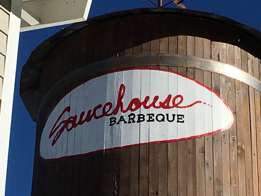 Our first stop on this trip was to the newest barbecue restaurant to open in town. It’s called Saucehouse, and the owners have been doing catering jobs under that name for more than two years. They moved into a site near downtown on Broad Street that had previously been occupied by a meat-and-three called Peaches. Construction here took a surprisingly long time, almost eighteen months, because the old building was in such disrepair that it had to be demolished and rebuilt from the ground up. Before Peaches was here, another barbecue place with the similar name of Springhouse had once been at this site. Springhouse expanded to at least one other location in the late 1990s and had a terrific reputation in its day. Hopefully, Saucehouse will one day be as well known.