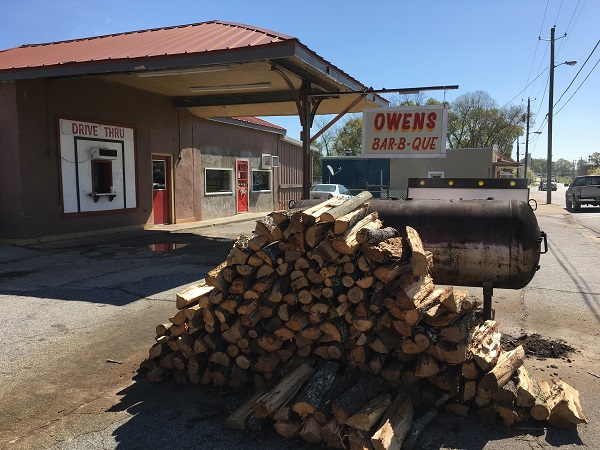 But on his three-stop tour, Andy didn’t make it as far out as Tallapoosa, which is where we began our little trip. I remain very impressed that this small town of 3100 is home to three barbecue places, meaning it has about the same per capita barbecue joint-to-resident ratio as Lexington NC. One of these restaurants, Sue’s (formerly Bronze Star), is not open for lunch on Saturdays, so we skipped it, and one of them, the Turn-Around, we already know serves some of the best Brunswick stew in the state. That leaves Owens, which has had a number of locations and places around the region. One Owens store, in Cedartown, was sold and became Lively’s Owens BBQ five years ago.