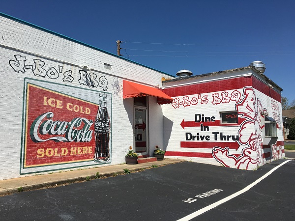 The last time that I was in Carrollton, I deliberately left behind a couple of barbecue places either for a rainy day or for other writers to check out. The city of 26,000 has at least six barbecue restaurants in its metro area. One of these is J-Bo’s, which Jason May opened in 2009. Its location is certainly one of the most unusual spaces of any restaurant that I’ve visited. It’s in a two-store building, kind of like a little strip mall, with a coin laundry on the other side of the wall. Now, having a next door neighbor that doesn’t serve food is nothing out of the ordinary, but these two spaces have a window between them. So if there’s nothing good on the TV while you enjoy your lunch, you can always watch people’s down comforters tumbling around in the wash.