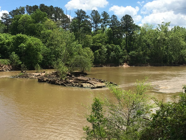 We weren’t entirely sure what we else that we would do in Milledgeville as we drove in on GA-22 from Sparta, but we figured that out as we pulled into town. See, there’s a bridge over the Oconee and just to our right as we crossed over, I saw some neat rapids. So after Shrimp Boats, we went down to the river to check that out, and learned that there’s a gorgeous walk that they put in, alongside the ruins of an old grist mill.
