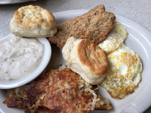 Our son had sausage and fruit, and Marie ordered her more recent breakfast go-to of fried eggs and toast, and I had their country fried steak platter. I only had a little bit of the steak; as the next day promised to be full of meat, I really watched what I ate for lunch and dinner on the Thursday.