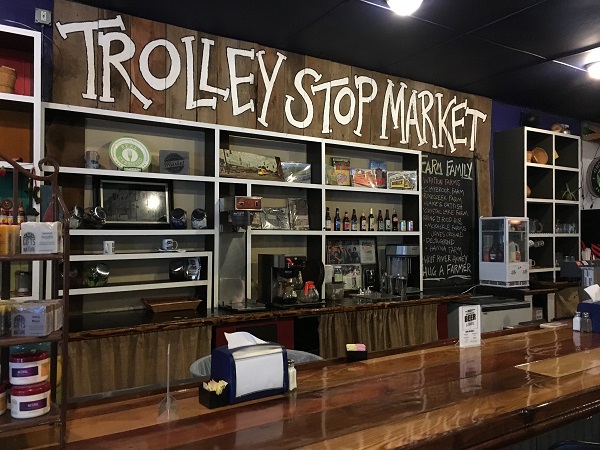 So after putting my head together with my sister’s and checking out her recommendations and comments on mine, I picked Trolley Stop for us all to convene on the evening before the graduation. They had tables big enough to seat our party together. Actually, they were pretty slow that evening, so we could have been an even bigger party than we were and still had room. Normally I’d have spent a good long time happily browsing the goods for sale, but when we arrived I was just too tired to do much more than scan the options from the table.
