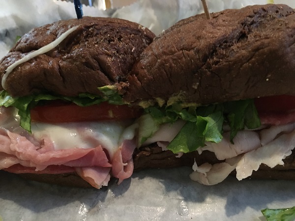 We were very pleasantly surprised to learn that this deli serves its great sandwiches on very soft, pillowy, steamed bread, about which, more in a moment. They’re available with two styles of dressing. Italian Style comes with olives, pepperoncini, onion, lettuce, tomato, vinagrette and mustard, and the Southern Style comes with mustard and cole slaw. I had an Italian Torpedo; that comes with turkey, ham, salami, and mozzarella cheese. These are easily among the best sandwiches that we’ve found in town so far.