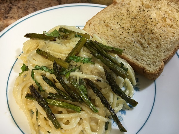 “So anyway, dinner’s pretty much ready. We’ve got this sort of, um, baked pasta thing, I don’t know how to describe it. It’s a bit early for asparagus, but it has asparagus, and it’s kind of lemony, and it’s got a little too much cheese… I just don’t exactly have a recipe so I’m not really sure what to call it.” – from Scott Pilgrim vs. the World by Bryan Lee O’Malley