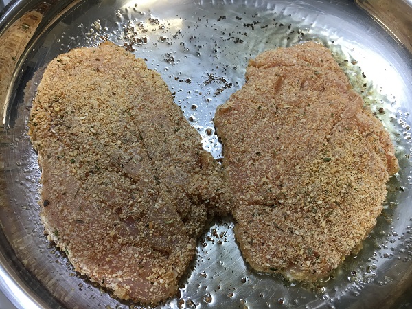 “I will coat a fry pan with corn oil and then pour it out, leaving a thin film in the pan, then I will gently saute the breast cutlets until golden brown,” I said.