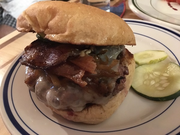Marie ordered their summer salad with trout. I have no idea why she did something so strange. Oh, she was very pleased and enjoyed her dinner very much, but I don’t quite understand why she’d do that when this burger is available.