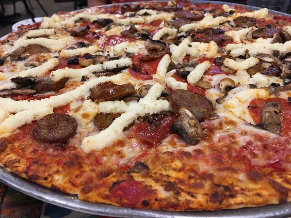 Looking into it further, I learned that they specialize in a “superfamouscrackerthincrust,” and they had a second location just a little closer to our home. There had been a third, about fifty minutes away in Sewanee (my favorite pizza blog, The Pizza Snob, had visited three years ago ), but that location has closed and they’re down to the two these days. I glanced at their menu online and noticed that some of their pizzas had been given some names that I could get behind: names like Sleestak, Isis, and Sigmund. If you’re following our Fire-Breathing Dimetrodon Time blog (and if you aren’t, then whyever not?), then you probably know those are just the sort of names to bring us a smile.