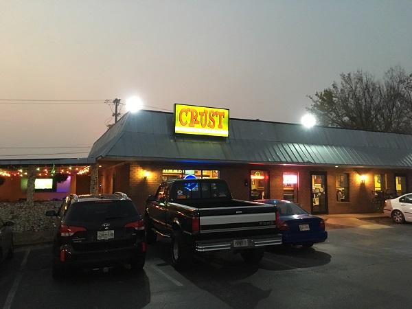 Several weeks ago, I decided that we really needed to try a few more local pizza places rather than just settling on Lupi’s. Then I noticed, to the point of it registering, the colorful Crust building, which was an old Long John Silver’s not fooling anybody with its new tenant. Crust is owned by the same terrific trio who run Aretha Frankenstein’s and Sofa King Juicy Burger: Greg Beairsto, Jeff Brakebill and Tim Kelly.