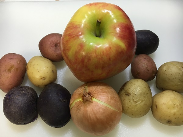 Melt the butter over medium-high heat and add the onion. When it has started to soften, put in the potatoes and apples and however much mural of flavor as desired (it’s a salt-free blend, but the recipe itself isn’t low salt because of the sausage) and some Italian seasoning, to taste. Add a little pepper and/or paprika as desired. Stir infrequently to let the potatoes and apples get some browned edges. When they are a little short of how done you want them to be, throw in the sausage rounds and stir everything up, then mix the vinegar and sugar to dissolve. Pour that into the pan and toss to coat. Cook just enough longer to let the flavors blend, and serve with garlic toast.