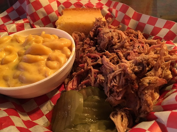 There was a neat little extra waiting for us when we arrived for lunch. As it turned out, this was the first day that they offered barbecue baked potatoes on the menu, and so Marie became the very first guest to order one. We were pleasantly surprised to see that they used melted cheese rather than shredded. That certainly changed up the flavor and texture! Marie really loves the flavor combination of chopped pork with a sweet sauce along with potato and cheese, but I think that using so much, melted, made the cheese a little too dominant.
