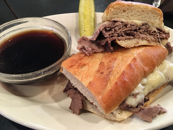 Last month, we took our son to the Creative Discovery Museum one weekend morning and caught the free shuttle across the river to eat here again. Weiss wasn’t working that day, and it was much slower than the crazy weekday rush. Marie had the French dip from that day’s specials, and I ordered a shrimp salad sandwich.