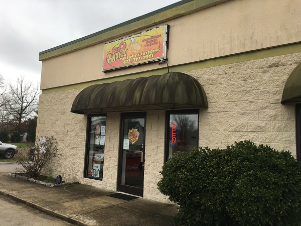 Well, whenever they do, they haven’t yet. But a couple of weeks later, I did drive north, rather than northeast, to the town of Soddy-Daisy and had some barbecue that was also quite similar to this. This restaurant is called BBQ Andy’s and it’s been open in a tiny space for almost six years. I was reminded of Dave’s by the smoke rising from the back of the building.