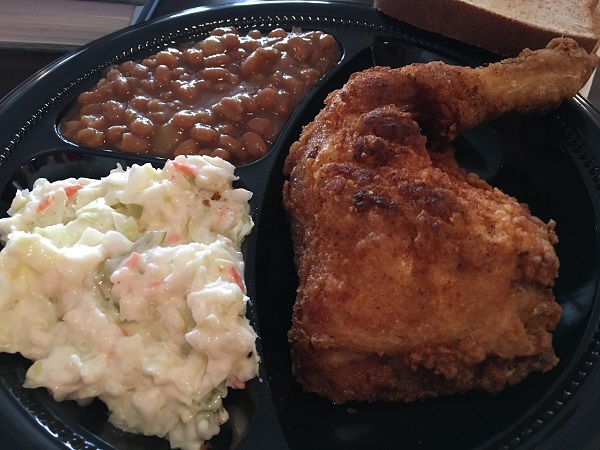 Finally, opening day came in January. No restaurant ever has all the kinks worked out on their first day. I gave them three. There’s a parking lot behind the building. It was paved in 1778. I was disappointed to see that they sell beer, but not sweet tea, but that was the only disappointment on that first visit. I had the medium-spiced chicken and loved it. This is a very pleasant, lingering burn, and the meat is very tender and juicy, with a mildly salty and crisp skin. Yes, I was very pleased with that. Then I came back a week later and pleasure turned into pain and made me a believer for good.