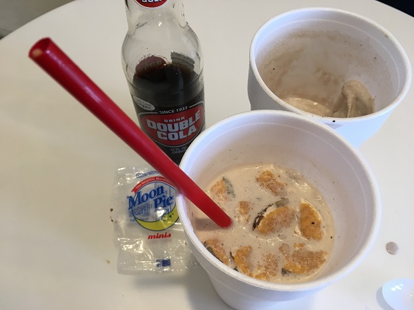 This is what you do: crush and crumble the MoonPie, pour in some Double Cola, pour in some Clumpies, stir and drink and thank heaven you live in a world where such a tasty sweet treat is available. I call this all-Chattanooga drink the Scenic City Shake and strongly encourage all of our readers to make one themselves.