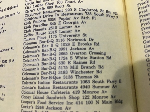 In 2016, we were travelling to Memphis and stopped at a restaurant in Collierville called Captain John’s. I learned then that this business had once been one of the many stores in an old chain called Coleman’s.