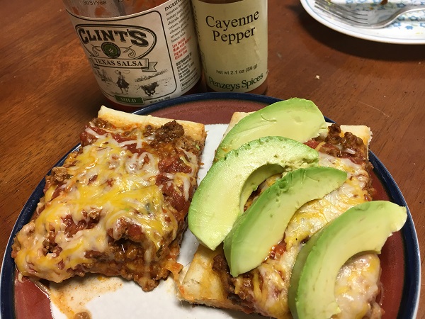 Therefore, Original Brand Name ™ isn’t going to get a shout out. It may not be their fault, but I’ll go ahead and put down the times and temps I actually used, and let the readers tweak as needed for their own ovens. Also, I put refried beans in mainly because I have a picky 5-year-old who was going to need the equivalent of a bean-and-cheese-no-sauce burrito pizza, but I liked the results of adding beans well enough to say they should have been in the original recipe (feel free to leave them out if you disagree). You’ll see the results in the visible line across the surface of the pizza where the flavor leaves off. However, I assume you don’t possess a 5-or-under yourself, and wrote out the instructions below accordingly.