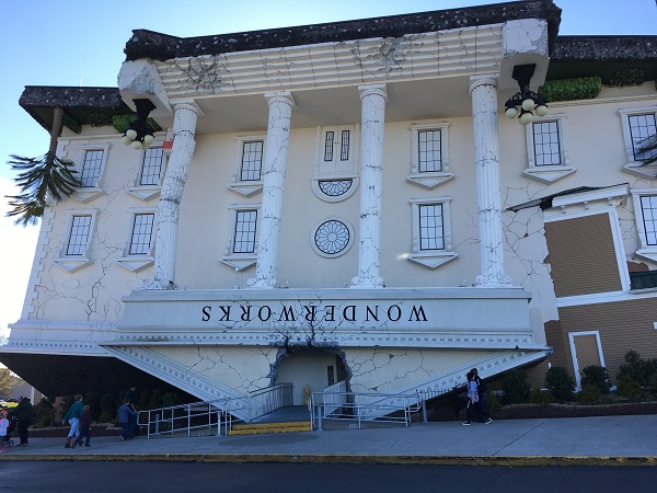 Then we got to Pigeon Forge, and experienced the gridlock traffic that town is so famous for. But there’s certainly plenty to look at, with go-kart tracks and museums and replica Titanics and giant apes, and there, on our left, was an upside-down building. We learned later that it’s a science-themed indoor amusement park for little ones, and so, eight and a half years later, we took our little one to play there.
