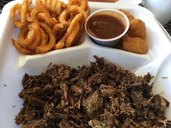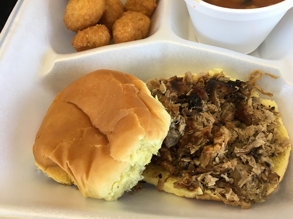 Overall, it was a pretty good meal. The beef was tastier than some chopped beef in the area, and miles better than any sliced beef I’ve found lately. Marie was happier with the pork, which has a good smoke flavor. Both meats needed a little sauce, but not too much, and certainly not as much as they dump on your meal if you forget to ask for it dry. We also enjoyed the corn nuggets, and wouldn’t mind going back for more of them.