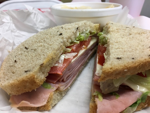The next week, I came back by – this time there were a whole four other cars parked in the segmented block of Chestnut – for a hot ham and Swiss sandwich on rye, and this time thought to have them add that lettuce and tomato. It was very tasty. They were a little slower on this visit, but I was happy to see a good crowd line up while I ate. I asked about how long this shop had been here, and the woman working the register said that they’d been on Chestnut for more than a decade, but the restaurant, which is today owned by Larry Jackson, dates back to the seventies and she believed it started out on Broad Street before moving around to new homes.