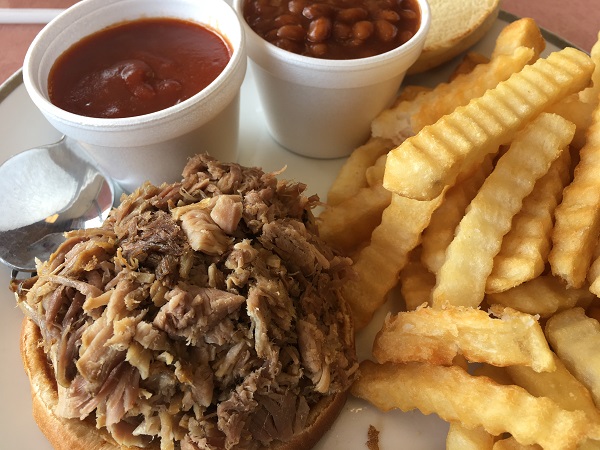 Our son didn’t wish to eat at Payne’s, but he was a little hungry by about 1.30, so we took a break. I told him that if he didn’t want anything on the menu at Reese’s Bar-B-Q, then we’d stop by a Tops for a cheeseburger. I confess a little selfishness here; I’ve read so much about their cheeseburgers that I’m curious, but I wanted to visit lots of other places on this trip. I was betting on my son ordering one so I could try a bite. But then we got to Reese’s and saw that they have fish sandwiches on the menu, and he was much more interested in that. Oh, well. Maybe in 2018 I’ll try one!