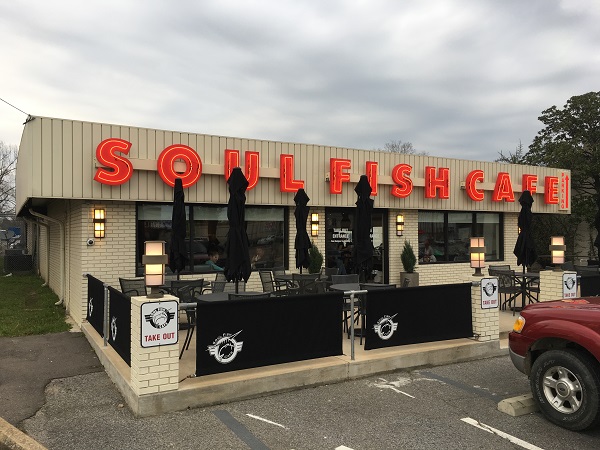 Soul Fish Cafe opened its first store on Cooper Street in 2006. It’s grown to three locations around Memphis and a fourth in Little Rock AR. I suggested that we meet up at the store on Poplar Avenue, because I had a good feeling we’d have more parking available there. We all arrived just in the nick of time. This place is hugely popular, especially on Friday evenings. We got the last available table, and the crowd that built up behind us had a very long wait ahead of them.