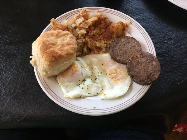 Stone Soup is more of a Modern American style of place. It has been around only a few years, having been opened in September of 2011 by chef Sharron Johnson after people missed her previous restaurant, Buns On the Run. The options at Stone Soup are a little more varied than at a more traditional breakfast place, ingredients change periodically as it uses farm-to-table sourcing, there is more of an emphasis on appearance, and the prices are a little higher. As a direct comparison, my husband’s giant plate of bone-in ham for First Breakfast cost about twice as much as the small side of ham I got, and sure looked like a lot more than twice as much meat. However, the quality of the ham on my side plate was better.