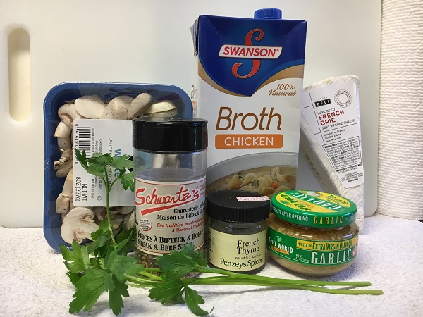 A wedge of Brie, 7-8 oz (I used that much the first time, and less the second; it’s needed for thickening the sauce so don’t skimp)