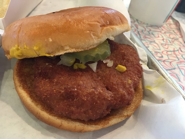 Marie has no time or patience for my slugburger fascination. She ordered a regular burger without the special sauce, and said it was juicy, wonderful, and even better than Wendy’s was when it was actually good. Our son continued his now-legendary picky eating crusade and just wanted a naked hot dog with ketchup, an order that caused the ticking machine of the service to stumble, weirdly. There are four dogs on the menu. Substituting or deleting toppings doesn’t seem to be programmed into the cash register options. Brooke, who we hadn’t seen in an age, was very happy with her barbecue sandwich, and was surprised that I didn’t order one. Plenty of that on the agenda, I told her, including a stop in Nolensville which we’ll share soon.
