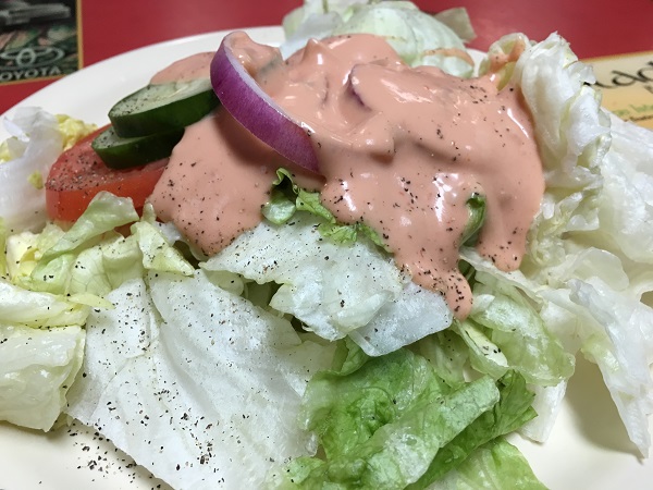 The Dixie Castle’s evening menu is fairly limited, with just about twelve selections, and salads of iceberg lettuce and a homemade Thousand Island dressing accompany just about everything. Well, I suppose there are other dressings, but who needs those, I ask you?
