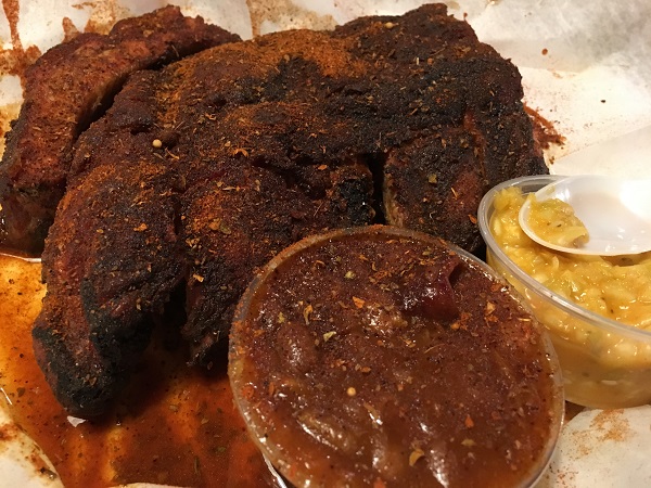 The Rendezvous opened in 1948 and moved to its present location twenty years later. Charlie Vergos had been serving various smoked meats since he opened, but it wasn’t really a “barbecue joint” like we’d identify it in the modern day. He just smoked hams, mainly, using an old coal chute as a vent, and served sandwiches and beer. Ribs came to his menu around 1957. Vergos gave them a paprika-heavy spice rub and served them dry, inventing the style that causes a little good-natured debate from time to time. Other places in town, like the mighty Leonard’s, began adapting their menu to follow Vergos, who also seems to have popularized mustard slaw. So because I really enjoy both, I tend to think of this style as quintessentially Memphis: dry ribs and mustard slaw.