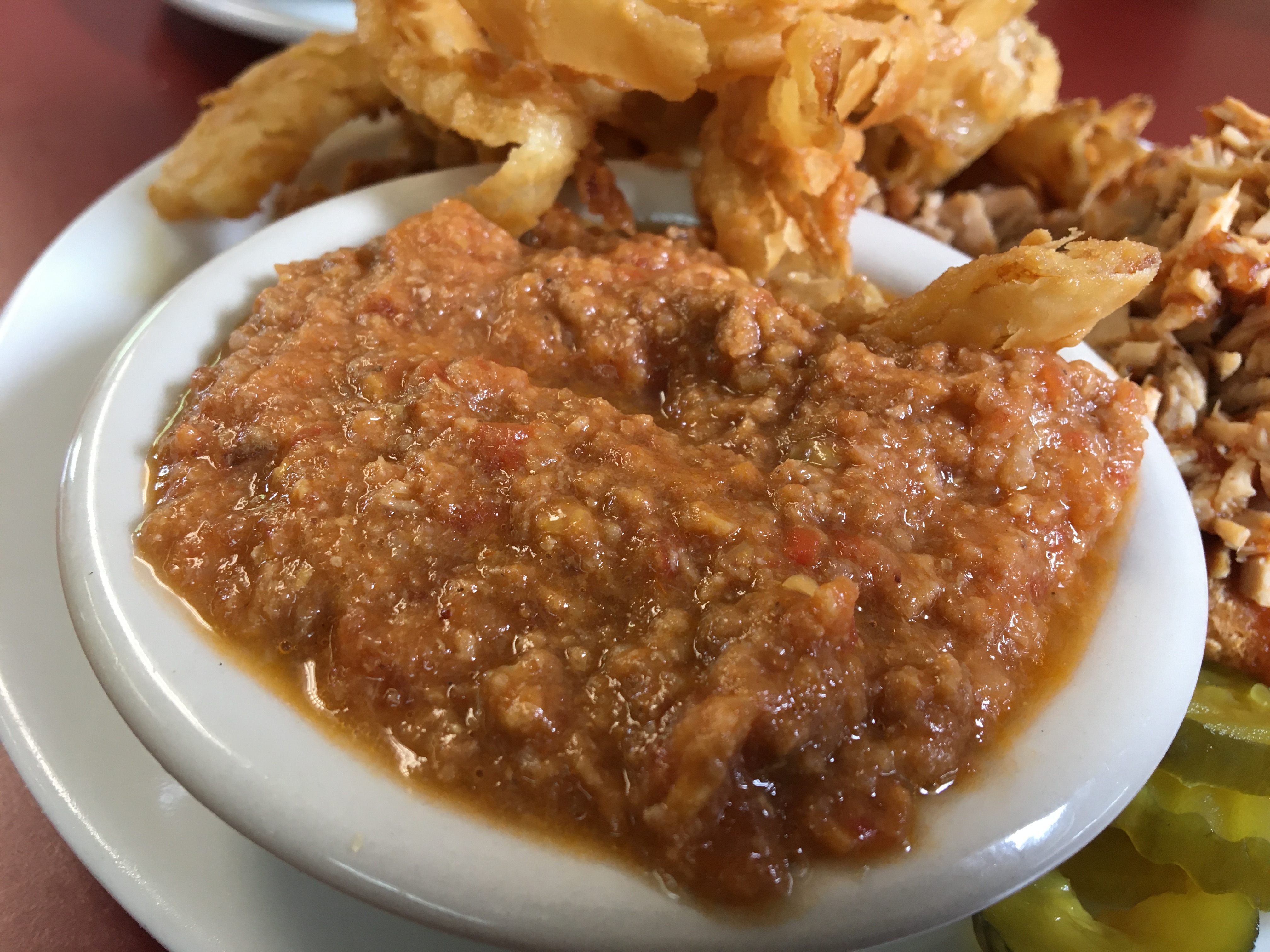 By now, we’d gone north and east enough to leave behind the middle Georgia mustard belt. The sauce in this part of Georgia is typically a tomato-vinegar-pepper mix, which gets hotter the more you shake it. Purvis is a no-frills, small menu experience in an old steel-walled building with concrete floors, mainly doing takeout chopped pork and chicken by the pound. Took us about ten years to get here, but I’m glad I finally stopped by.