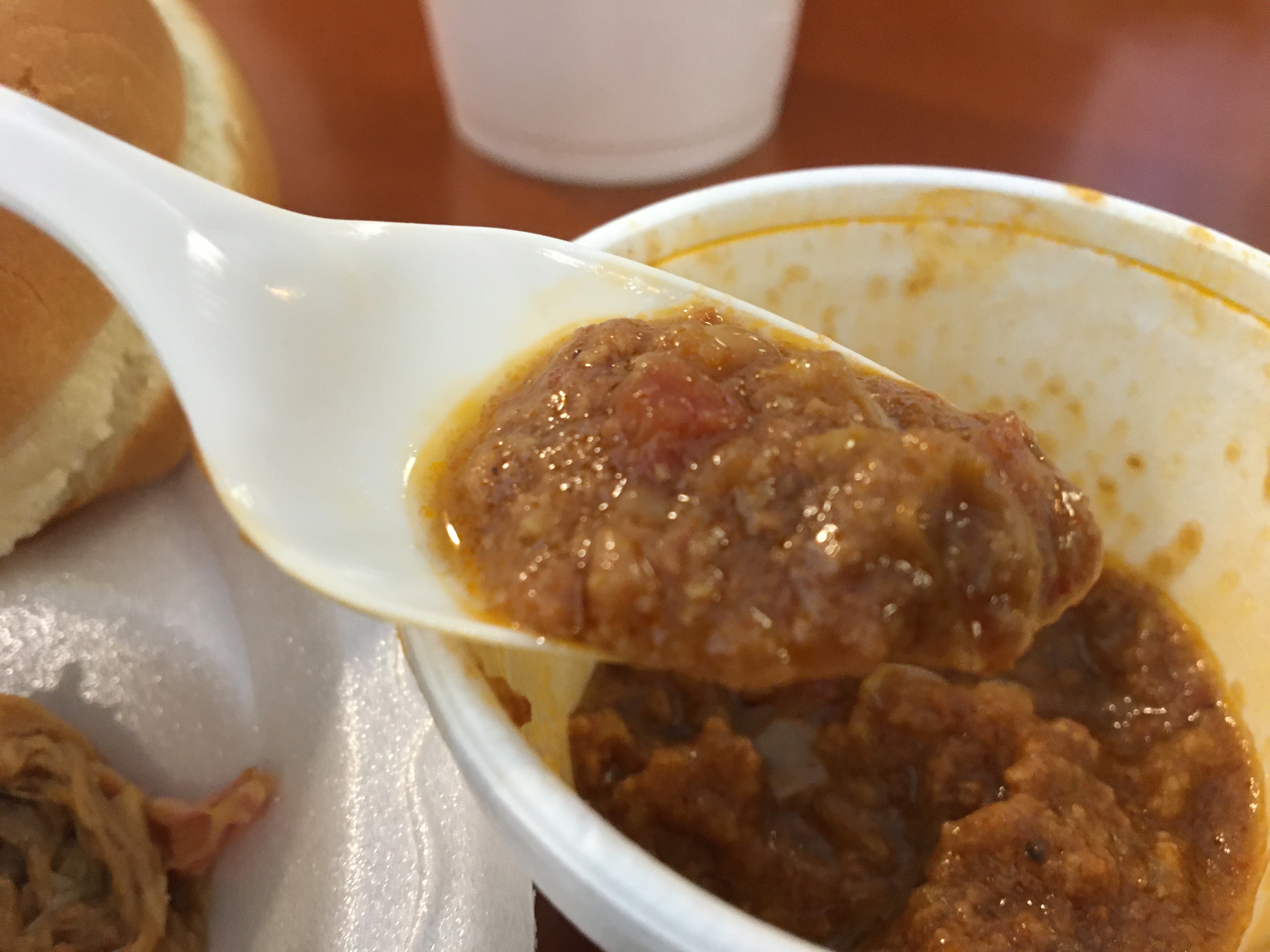 The last stop on Friday was in Thomson, on the west side of the Augusta metro. Neal’s does the east Georgia pork and slaw as you’d expect, but around here they serve hash over rice instead of stew. So what’s the difference between the stew we’ve seen before today and hash? Not a great deal; they’re all cooked way down, and around Augusta (and across South Carolina), hash is typically served over rice, made with pork, tomatoes, corn, sometimes other meats. When you get into South Carolina, you can probably find places with really fascinating and very different styles of hash, some of which have beef as the main ingredient, but we never ran into anything that radical in Georgia.