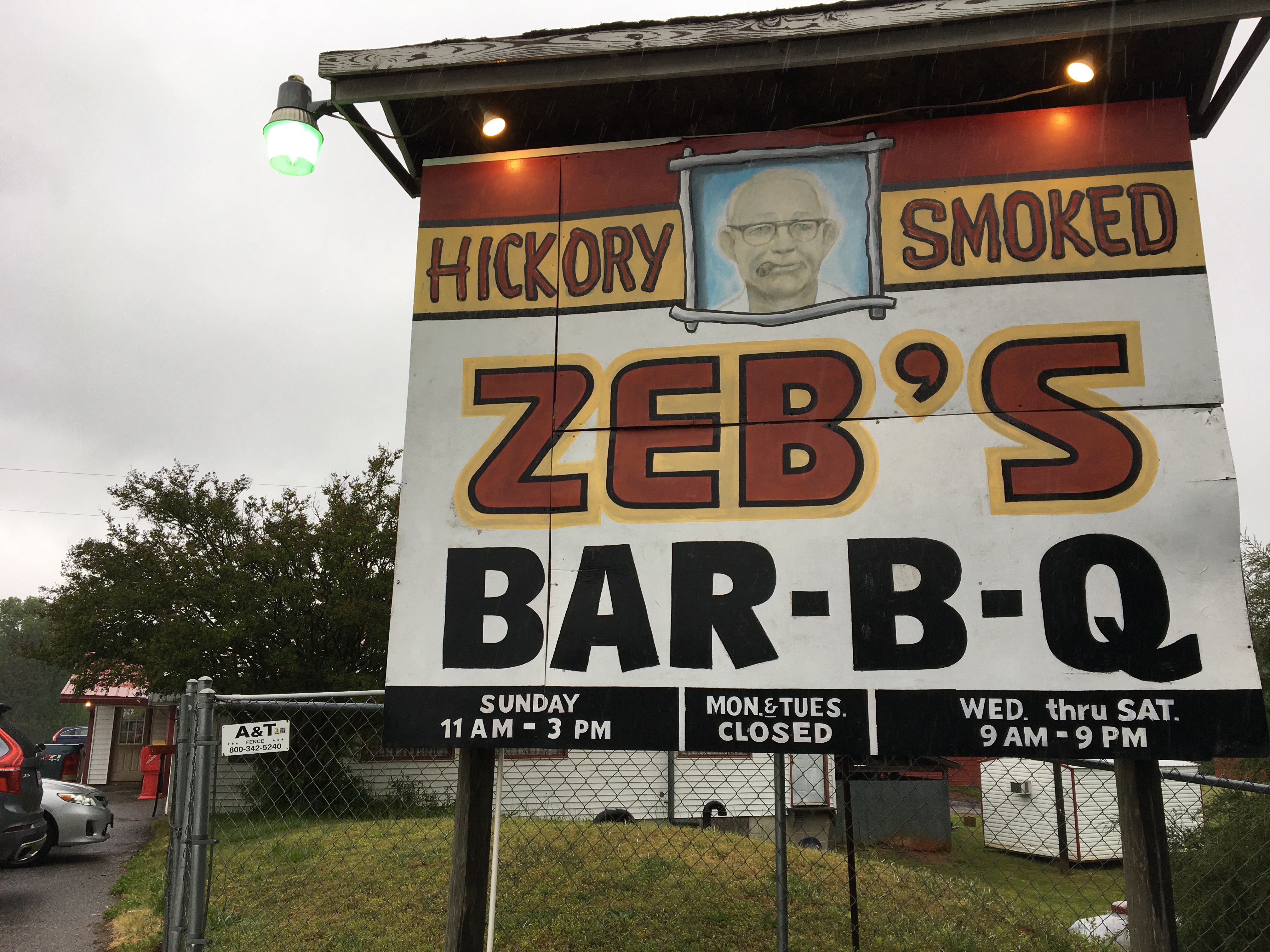 Anyway, we made it to Zeb’s, which opened in 1947 and serves great chopped pork and a fascinating stew made with creamed corn, they say. I’ve eaten here many, many times. Zeb’s sauce is vinegar-pepper, and the more you shake it, the spicier the pork. It’s very similar to the sauces in restaurants I’ve visited in eastern North Carolina that way. I used to say that the Athens triangle trifecta of Zeb’s, Paul’s, and Hot Thomas was jointly tied for third place as my favorite Georgia barbecue restaurant. Reckon it’s Zeb’s all on its own now.