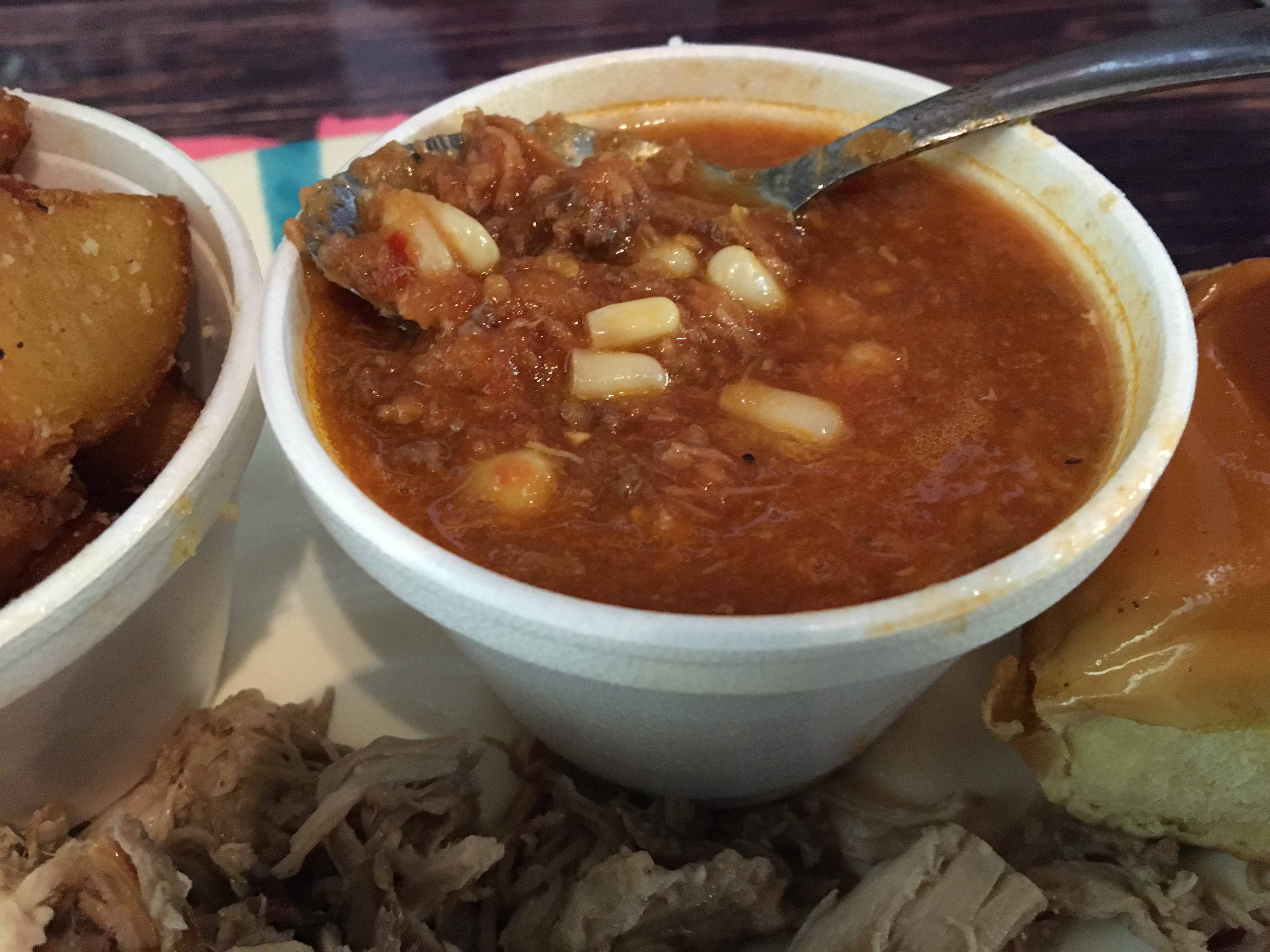 And, as I mentioned earlier, the Brunswick stew in this part of the state is generally much thinner than in middle or northeast Georgia, and it’s more like a tomato broth with corn added rather than both vegetables cooked down equally.